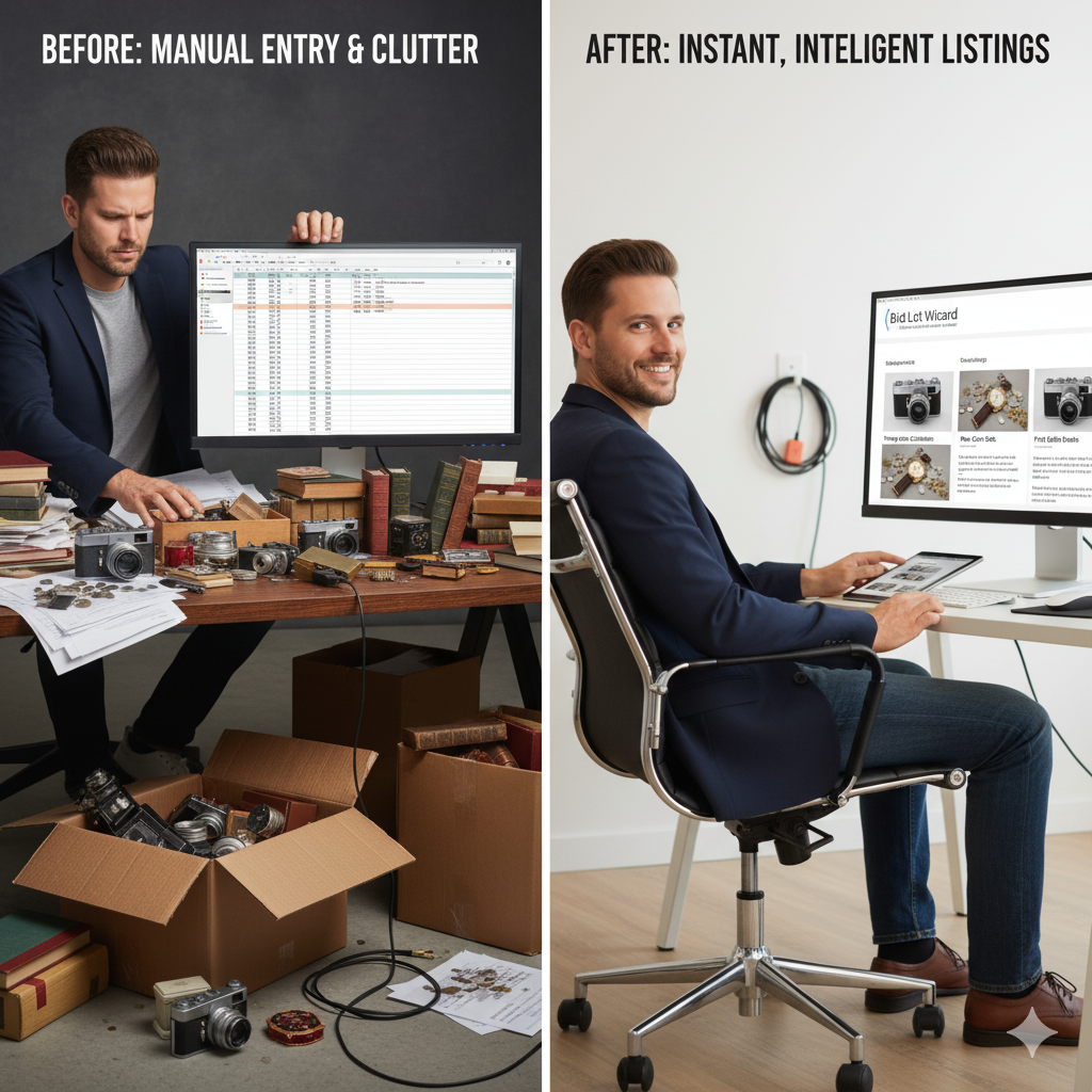 Auctions should be exciting — not exhausting. Yet many sellers spend hours manually sorting, grouping, and preparing listings, losing valuable time and potential profit.